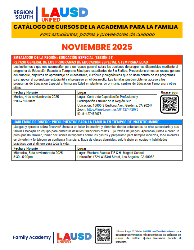 CATÁLOGO DE CURSOS DE LA ACADEMIA PARA LA FAMILIA Attached Files November FA SOUTH Course Catalogue SPANISH.pdf
